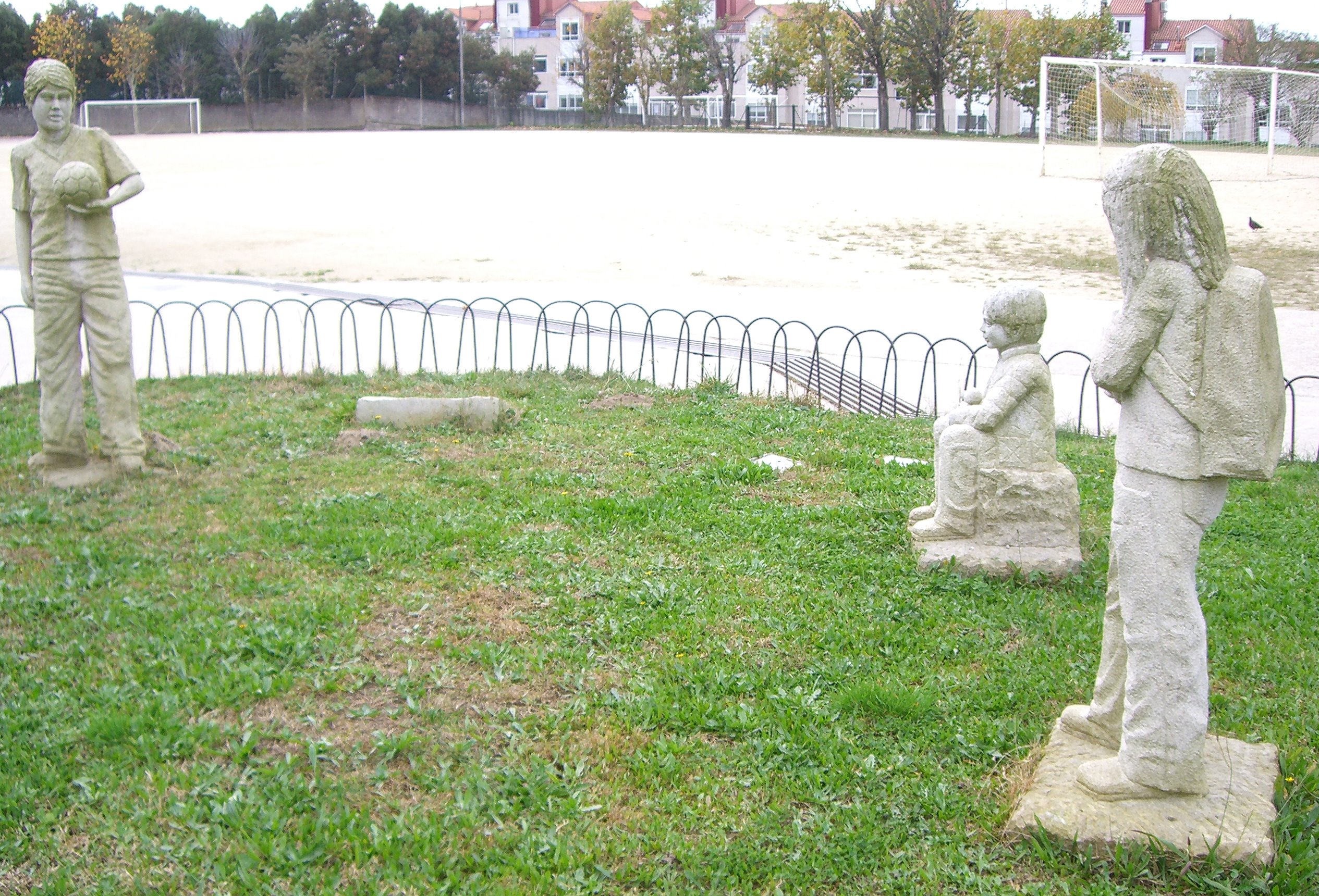 El grupo escultórico consta de tres piezas: una niña (142x30x30), un niño sentado (90x45x45) y un niño con pelota (150x40x30).