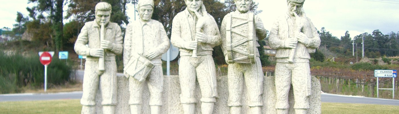 La banda de gaiteiros que representa fue realizada en el 2007 para la rotonda de Santa Marta, en Puentearnelas (Pontevedra), lugar donde sigue ubicada en la actualidad.