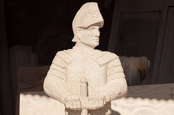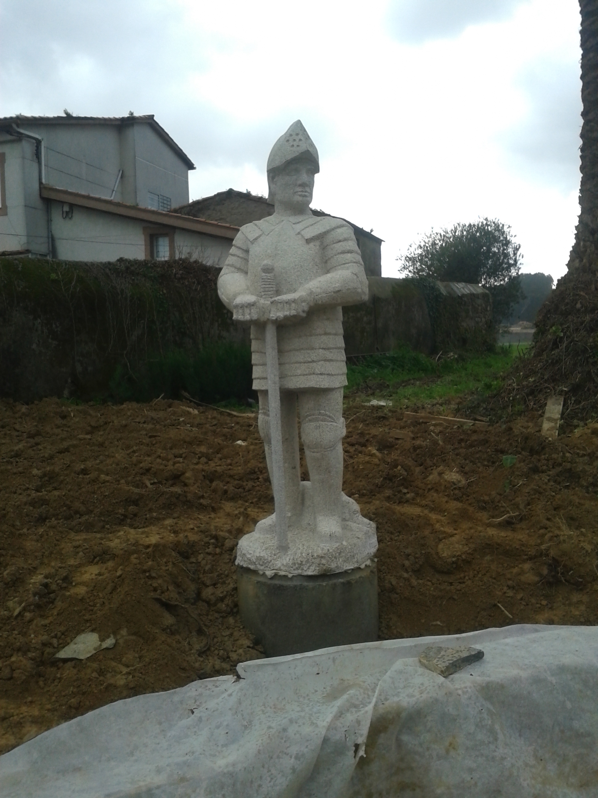 Ha sido realizada en talla directa sobre granito. Es una recreación de 1’70×0’60×0.40 de la figura de Almeiras, caballero del s.XV perteneciente a la familia Moscoso aparecido en una lápida de Culleredo.