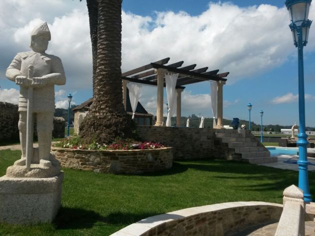 Junto con el escudo heráldico del apellido Brandariz, la escultura del Caballero Almeiras está ubicada en Villa Brandariz (Alvedro – A Coruña).
