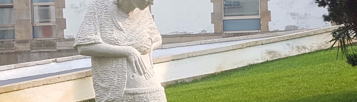 La escultura, colocada ante el tejo que está en el exterior del Hospital Provincial de la ciudad de Pontevedra, es una talla de 1.70×o.55×o60m.en granito silvestre de Lugo y ejecutado a talla directa.